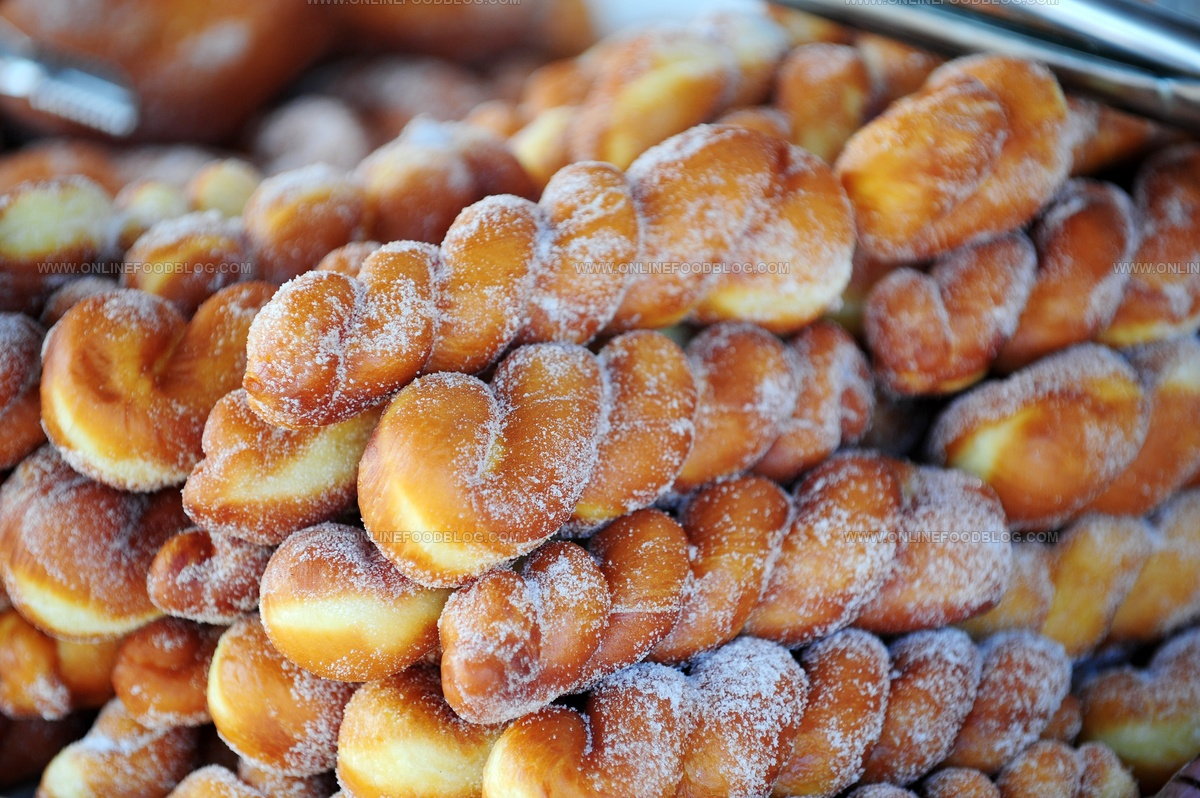 Skilled hands roll the dough into long ropes, expertly twisting them into short braids before deep-frying until golden brown.