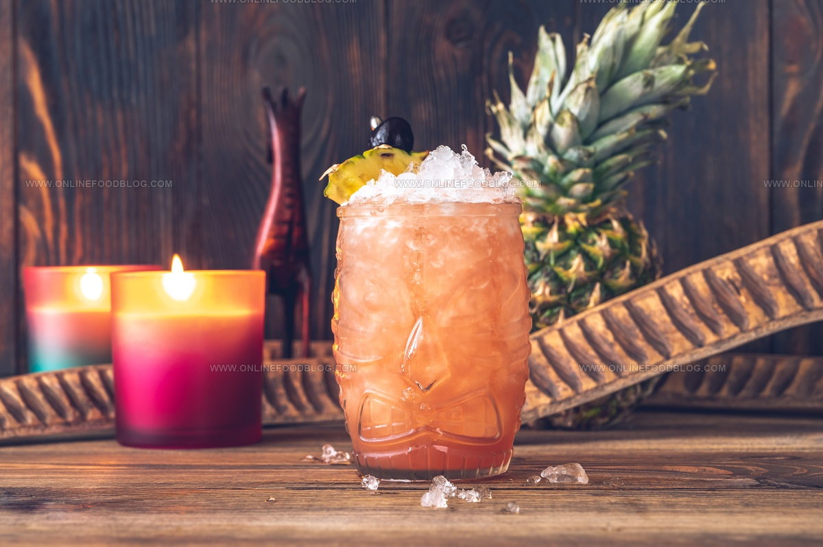 Bartenders shake ingredients with ice before straining into a rocks glass or traditional tiki mug.