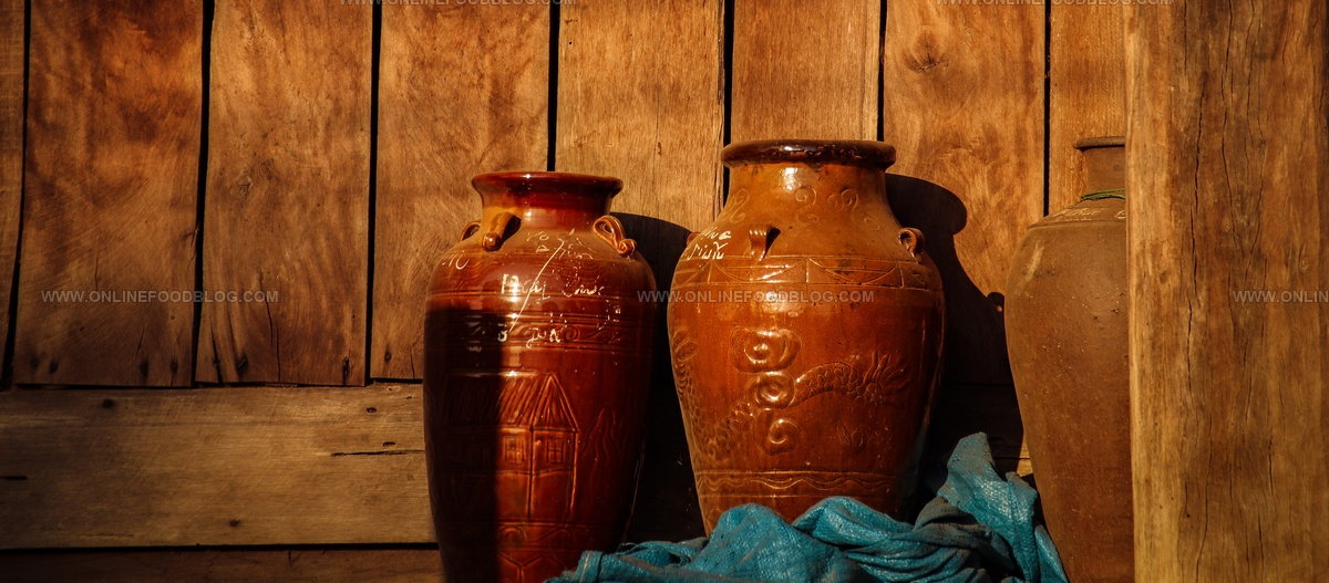 Fermented in large earthenware jars sealed with banana leaves, this potent beverage combines rice, spring water, and yeast with unique herbal infusions.