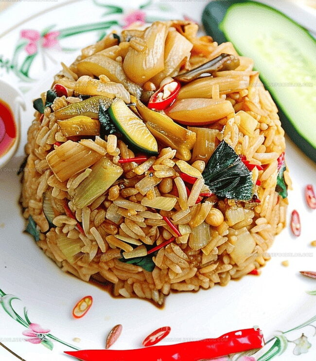 - Plating and Presentation: Transfer fried rice to serving dishes, strategically positioning reserved chili slices for visual enhancement. Accompany with cucumber slices and optional fish sauce with chopped chilies for an authentic Thai culinary experience.