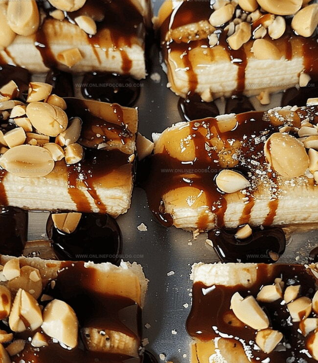 Rich banana snickers bars merge decadent dessert magic with nostalgic comfort.