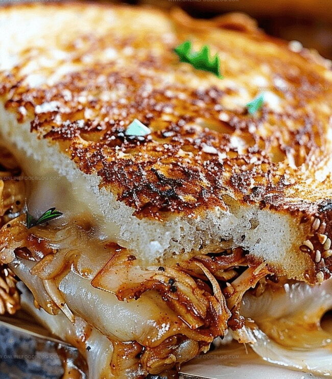 BBQ chicken grilled cheese brings together smoky pulled chicken and melted cheddar between crispy sourdough slices. Layered with tangy barbecue sauce and caramelized onions, this sandwich delivers a mouthwatering blend of comfort and bold flavors you’ll crave.