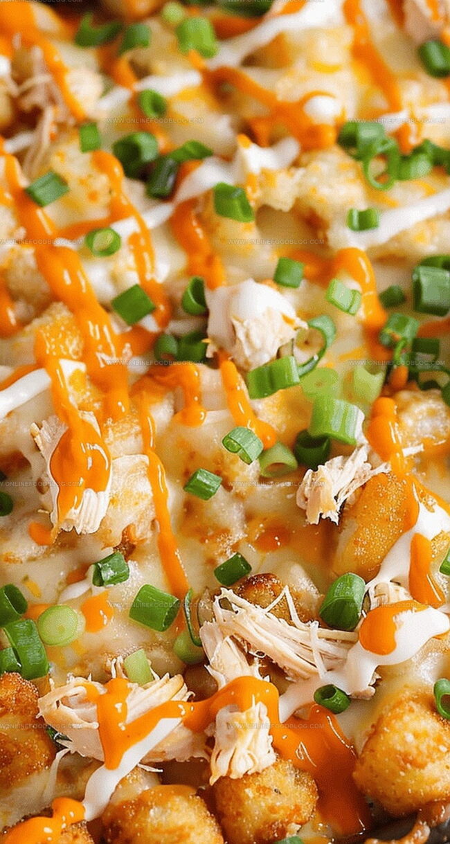 Buffalo Chicken Tater Tot Nachos: Spicy and Savory Indulgence