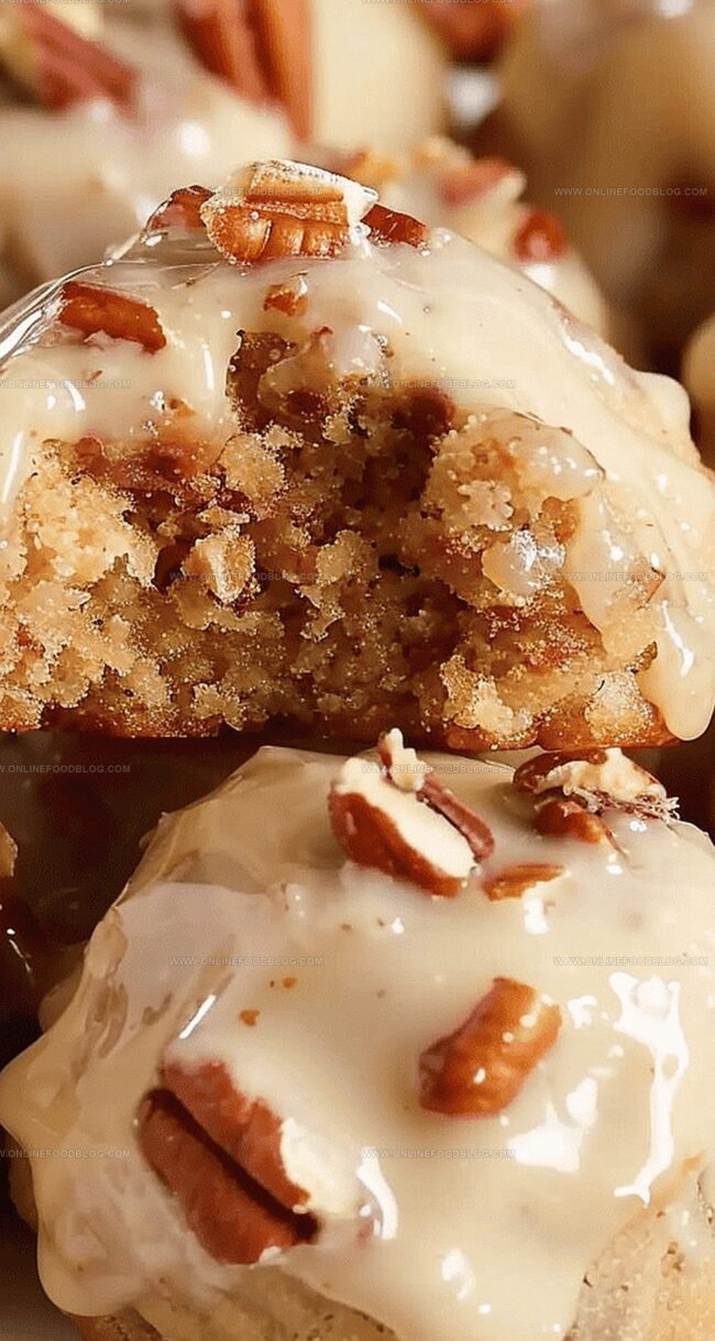 - Immediately sprinkle additional chopped pecans over the glazed cookies, allowing the glaze to set and create a delectable finish before serving.
