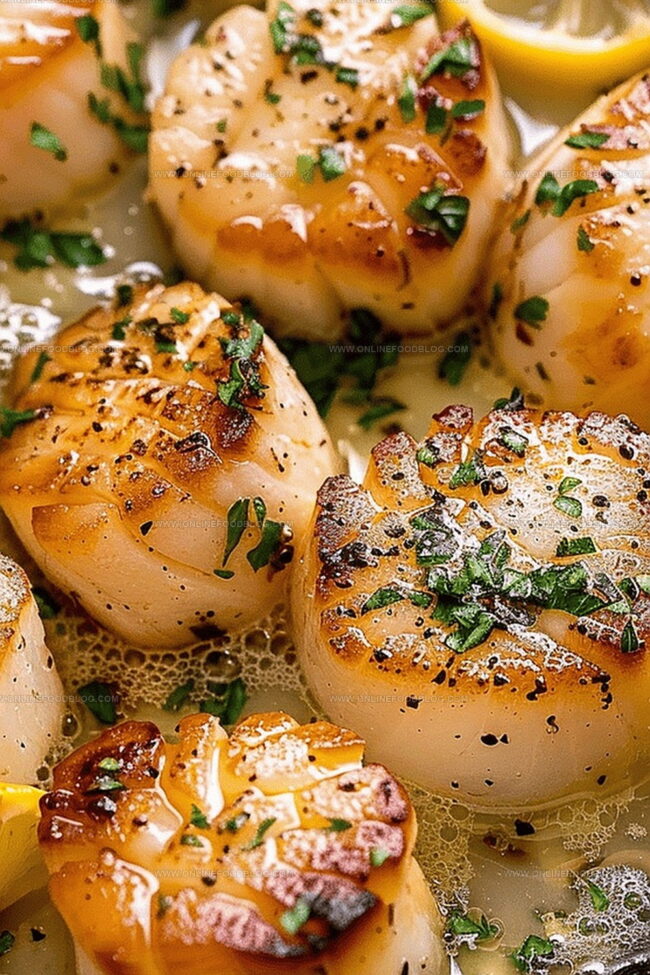 - Gently return seared scallops to the skillet, coating them with the fragrant lemon-garlic butter sauce. Sprinkle chopped fresh parsley for added color and brightness.