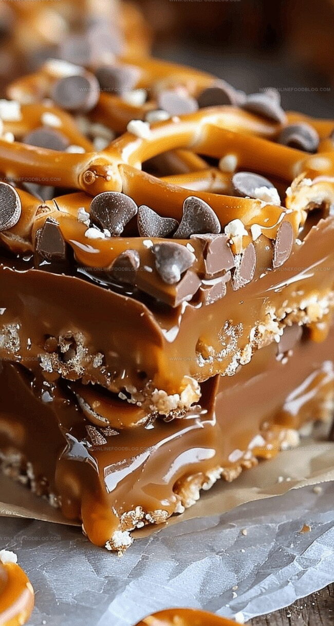 Crunchy pretzels provide an unexpected twist to classic dessert expectations, creating a delightful contrast against smooth, rich caramel.