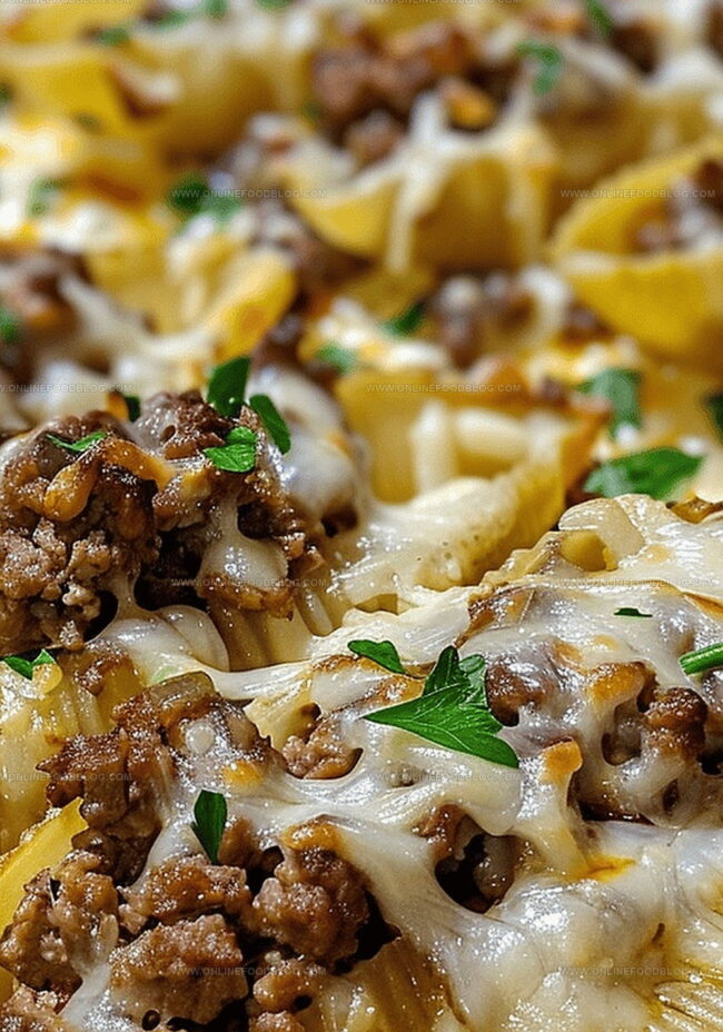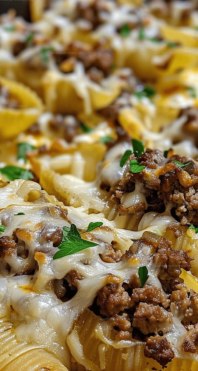 Tender strips of beef intermingle with melted cheese and perfectly cooked pasta, promising a dining experience that transcends ordinary recipes.