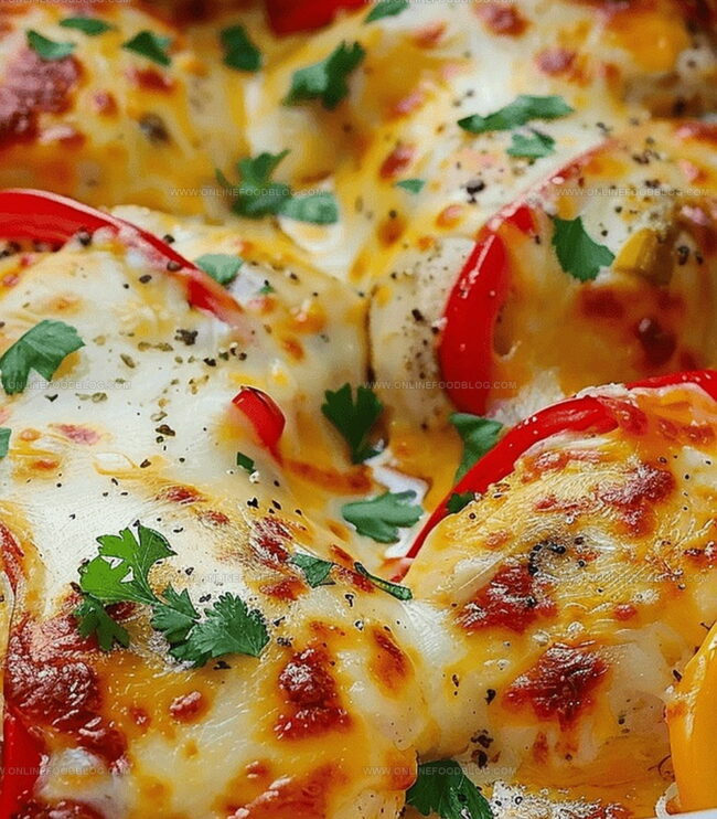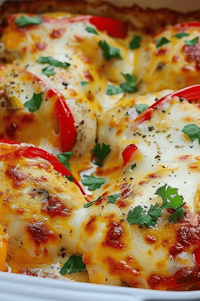 Cheesy baked chicken and peppers promise a tantalizing meal that redefines ordinary ingredients into something extraordinary.