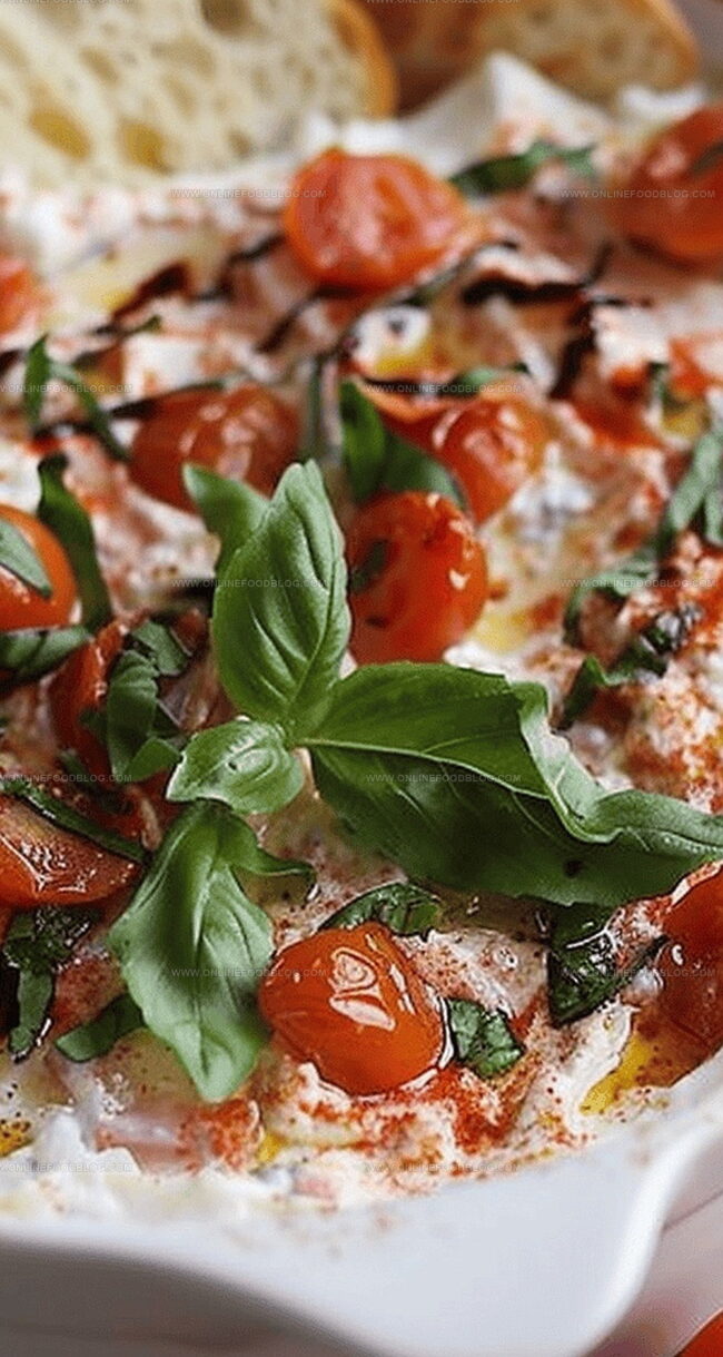 Sprinkle freshly chopped basil leaves over the hot dip for a burst of fresh herbaceous flavor.