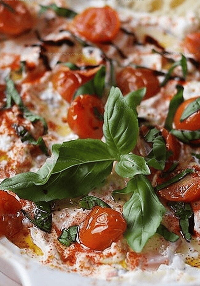- Sprinkle freshly chopped basil leaves over the top, adding a vibrant green garnish and a burst of herbaceous aroma.