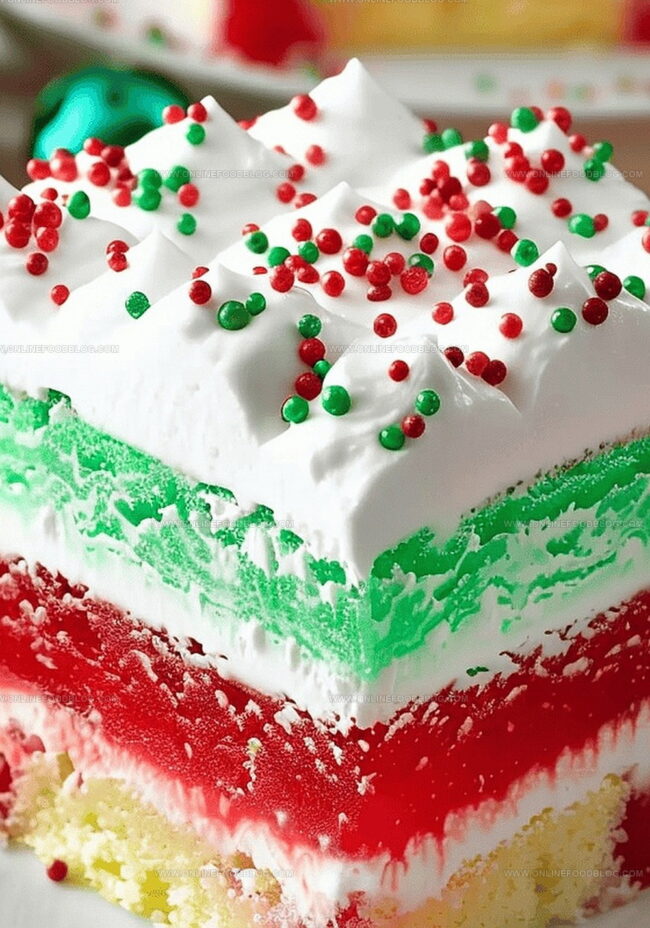 - Alternating Cherry and Lime Jell-O creates a beautiful marbled effect, making this cake as visually stunning as it is delicious.