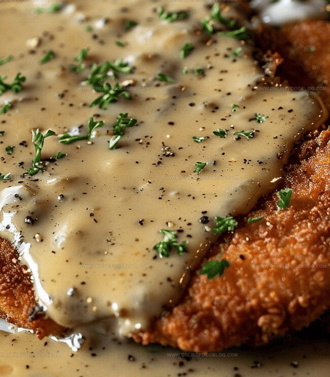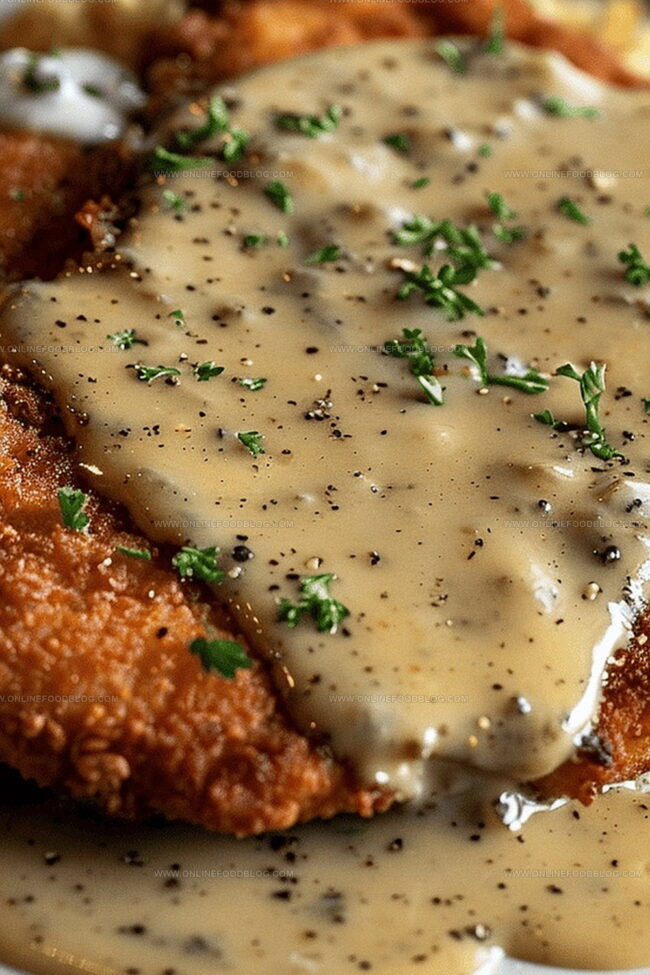Rich, creamy gravy reinvents the dish from simply good to absolutely spectacular, adding layers of flavor that complement the crisp breading.
