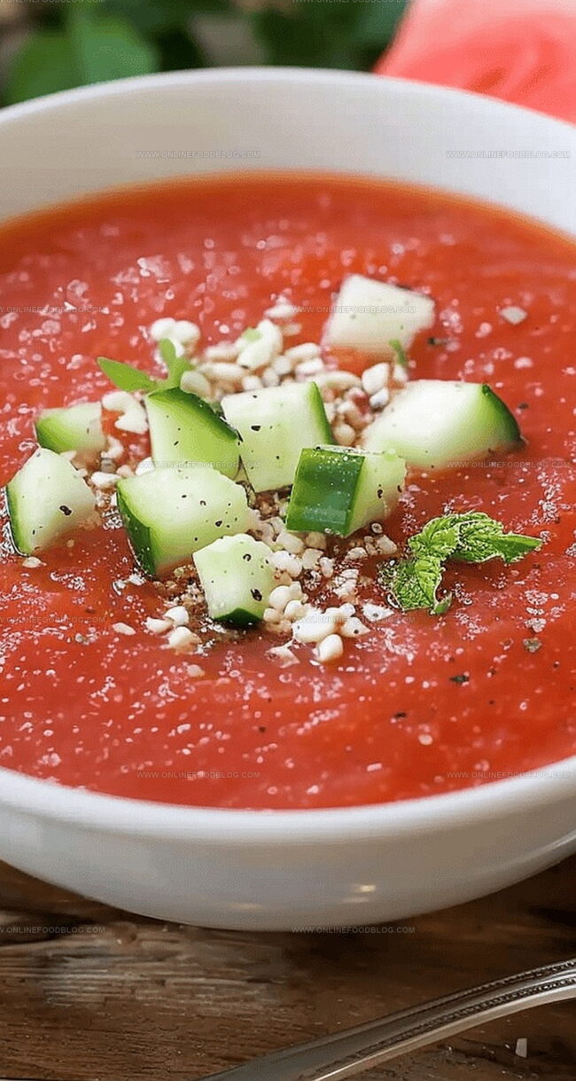 A magical blend of summer’s sweetest fruit transforms into a chilled liquid delight that dances with vibrant garden flavors. This cool soup captures the essence of sunny days and relaxed gatherings.