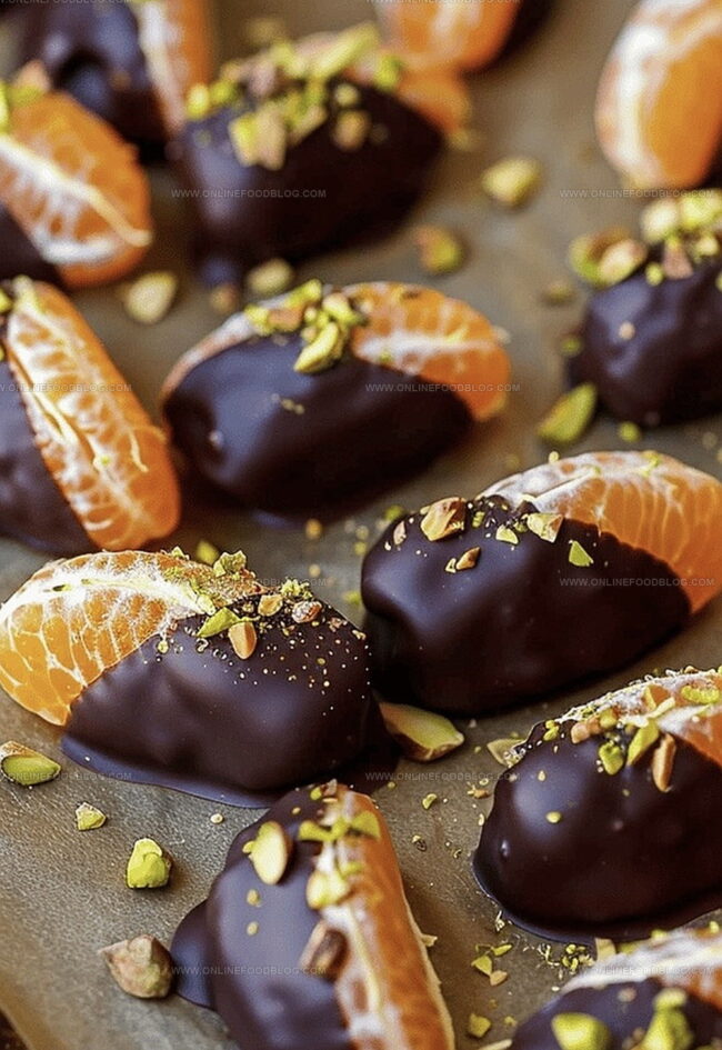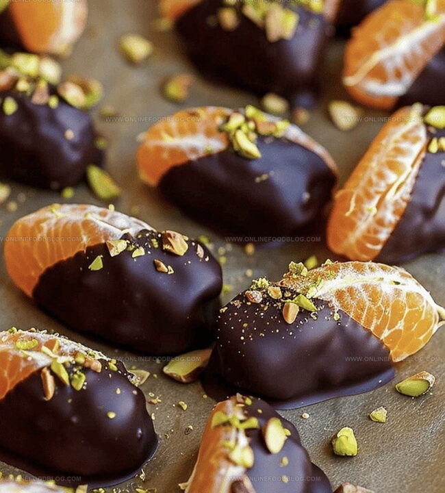Chocolate Dipped Mandarin Slices bring Mediterranean sunshine to dessert elegance. Juicy mandarin segments dressed in rich dark chocolate create an irresistible treat perfect for intimate gatherings or solo indulgence.