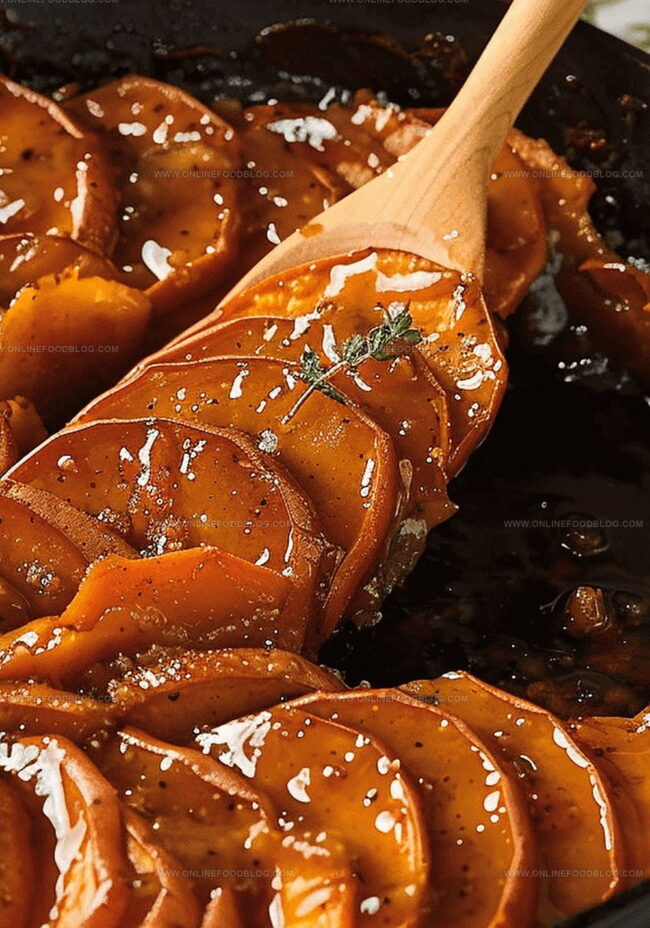 - Serve immediately while the sweet potatoes are warm and the sauce is still glossy and inviting.