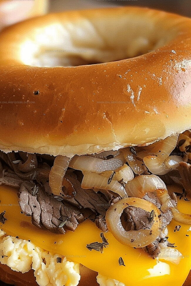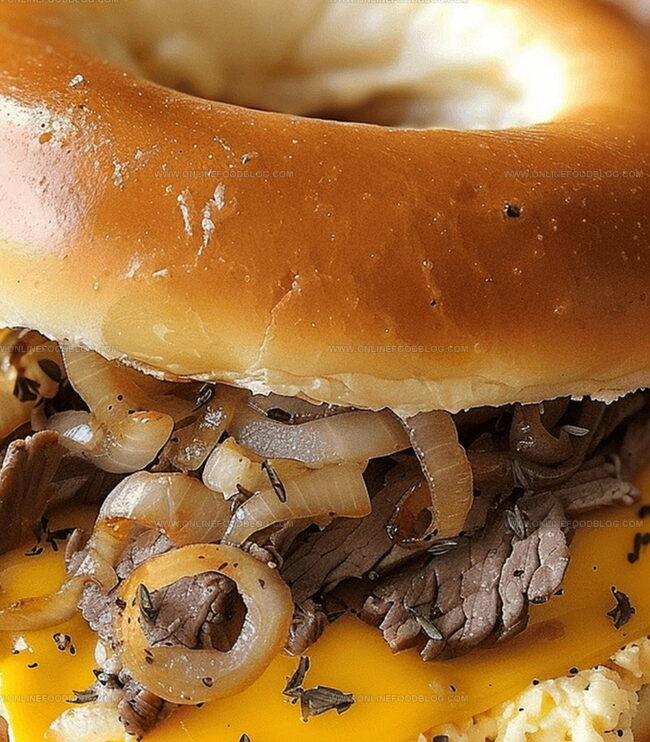 Savory beef steak nestled between a soft, golden bagel creates a mouthwatering experience that feels both indulgent and comforting.