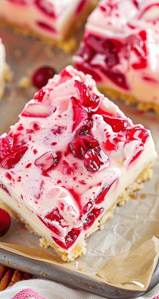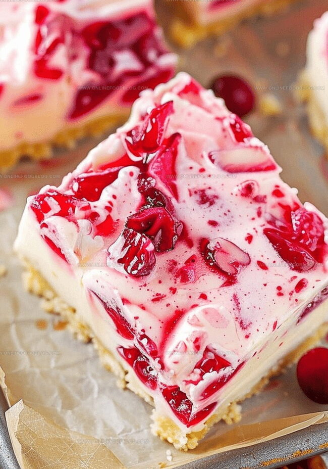 Cranberry Bliss Cream Bars deliver a perfect winter dessert with creamy white chocolate and tangy cranberries. Rich layers of smooth cream cheese and zesty cranberry create an irresistible treat that melts in your mouth and leaves you craving more.