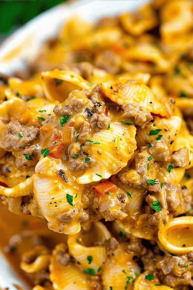 Creamy Beef and Shells delivers comfort on a plate, blending tender pasta with rich, seasoned ground beef in a velvety sauce. Hearty home-style cooking comes together quickly, offering pure satisfaction with minimal effort.