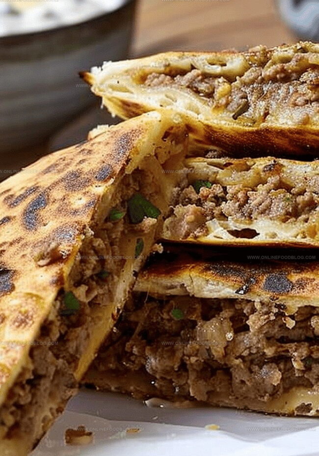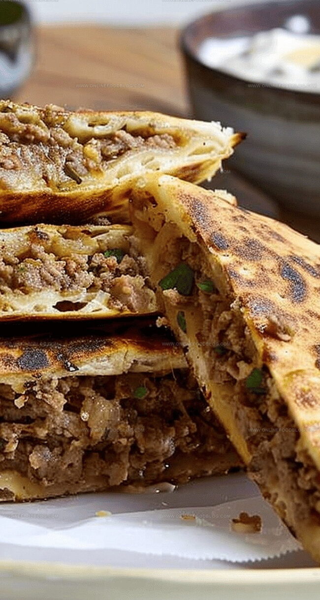 - Pita Preparation: Microwave pita stacks briefly to enhance pliability, then slice into half-moon shapes, creating perfect vessels for the seasoned meat filling.