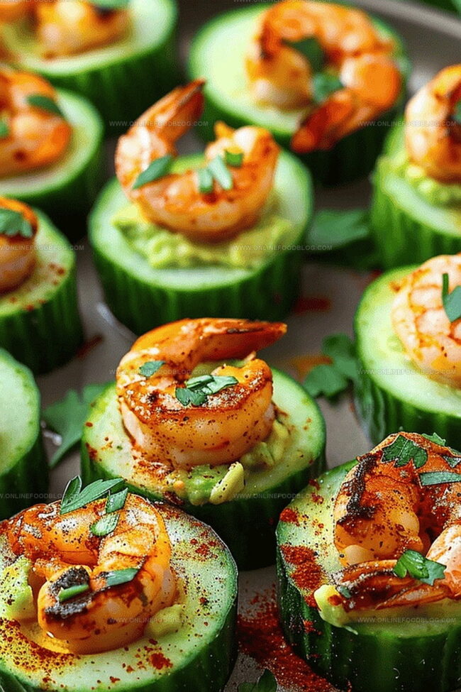 - Bite Assembly: Layer cucumber rounds with velvety avocado cream, then crown each bite with the perfectly blackened, aromatic shrimp.