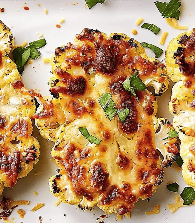 - Serving: Transfer the cauliflower Parmesan steaks to serving plates, crown with remaining Parmesan, sprinkle fresh basil leaves, and dust with red pepper flakes for a zesty finale.
