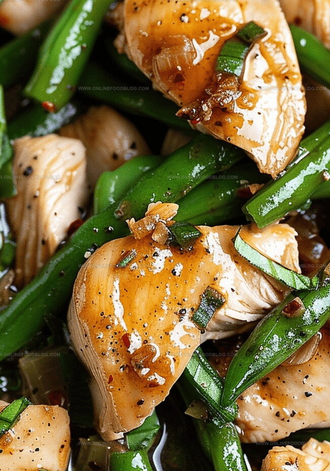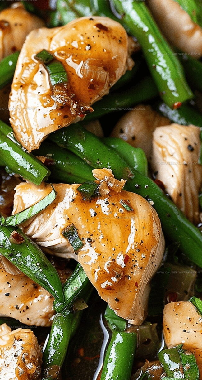 The vibrant green beans add a delightful crunch that contrasts beautifully with succulent chicken pieces.