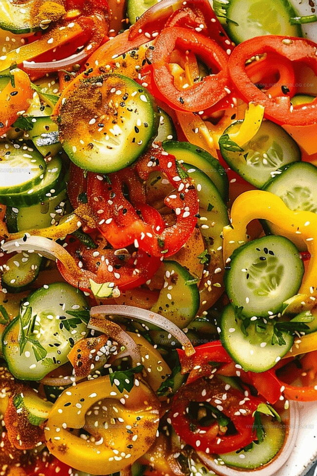 Crispy Cucumber and Pepper Salad brings Mediterranean freshness to summer tables with its zesty blend of crunchy vegetables and tangy dressing. Garden-fresh ingredients combine perfectly, offering you a light, refreshing side dish that complements grilled meats and seafood delightfully.