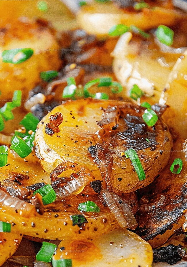 Gently coax sweet onion slices into a rich, soft amber color through slow cooking. Allow each slice to melt and develop complex sugary notes, releasing incredible depth of flavor that will complement the potatoes perfectly.