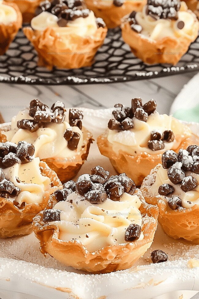Delicate pastry shells cradle a silky cannoli filling that whispers sweet secrets of Sicily in this mini cannoli cups recipe.