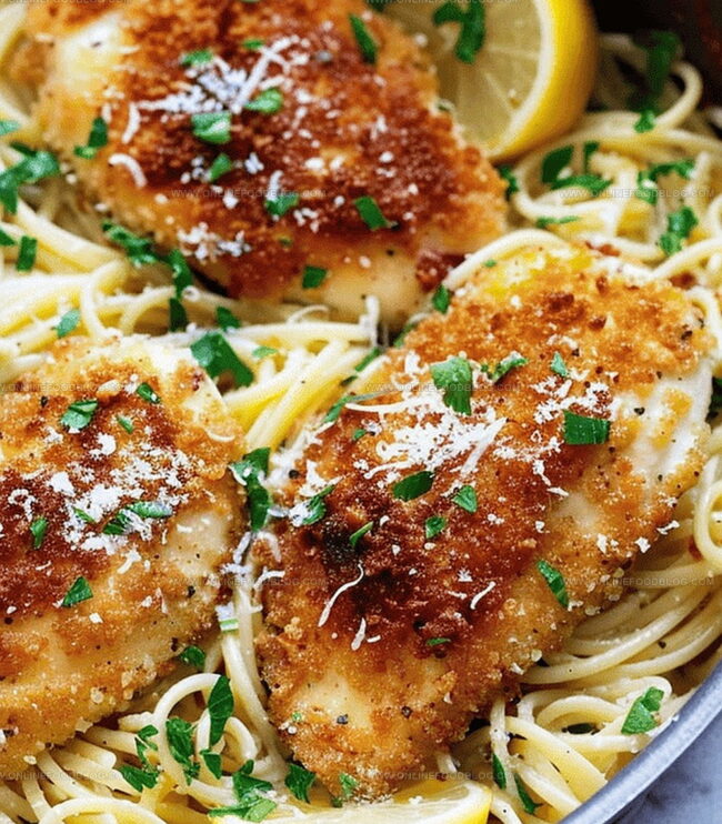 Crispy Parmesan Chicken over Creamy Lemon Garlic Pasta brings Italian-inspired comfort to dinner tables with irresistible flavor. Crunchy golden chicken nestles atop silky pasta, promising a delightful meal that satisfies both elegance and hearty hunger.