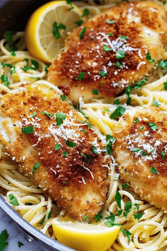 Crispy Parmesan Chicken Over Creamy Lemon Garlic Pasta Recipe