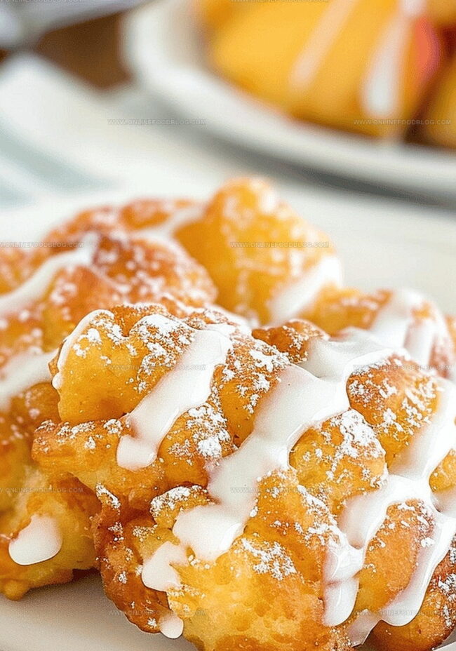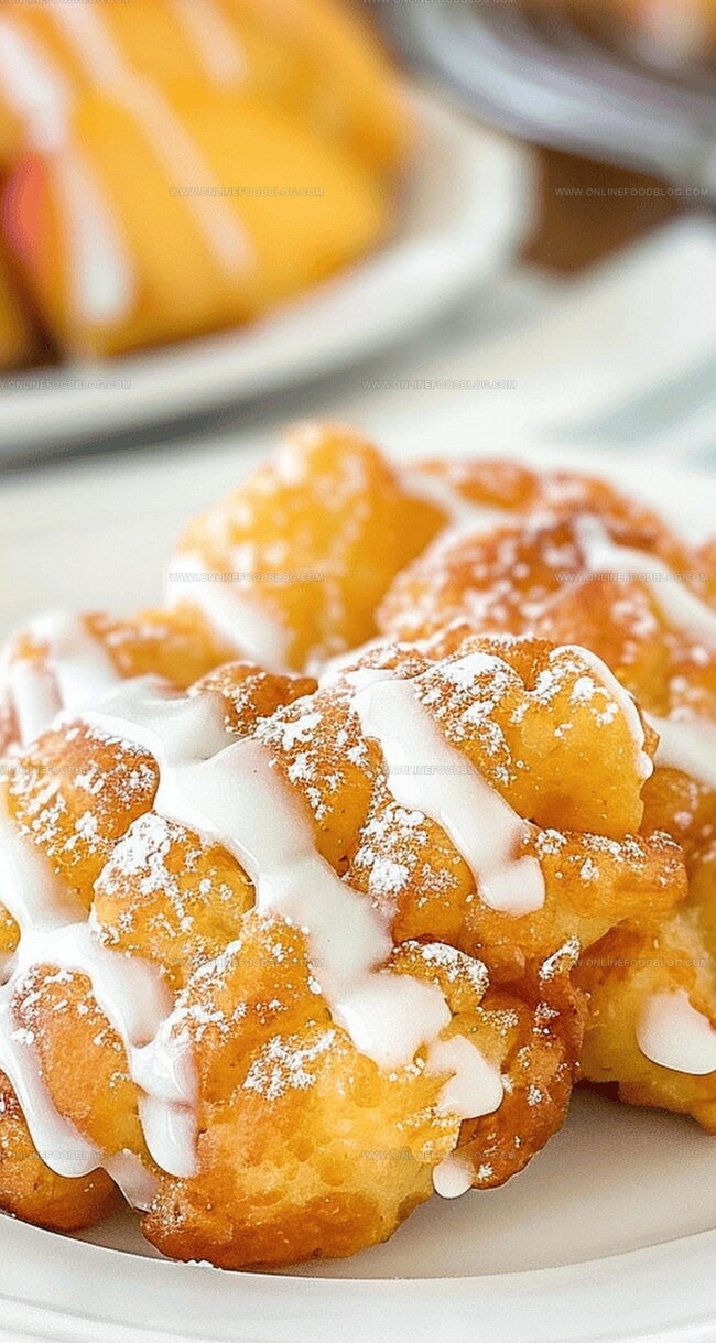 Transfer the freshly fried fritters onto paper towels to absorb excess oil. Create a simple glaze by mixing powdered sugar with milk until it reaches a silky, drizzle-ready consistency. Generously coat the warm fritters with the sweet glaze or sprinkle with granulated sugar for an extra touch of sweetness.
