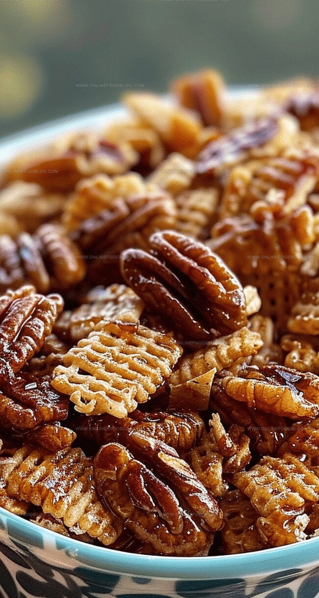 - Use fresh pecans and crisp cereal for maximum crunch and flavor in your final snack.
