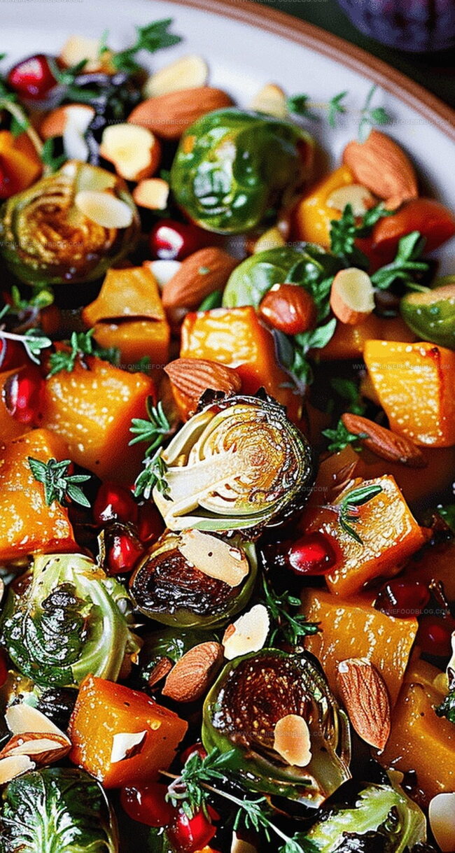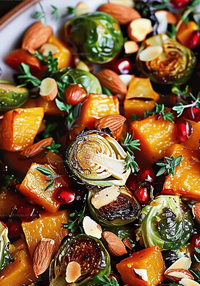 - Finishing Touches: Drizzle warm balsamic glaze over the roasted vegetables, sprinkle with toasted almonds and pomegranate seeds, and garnish with fresh thyme leaves.