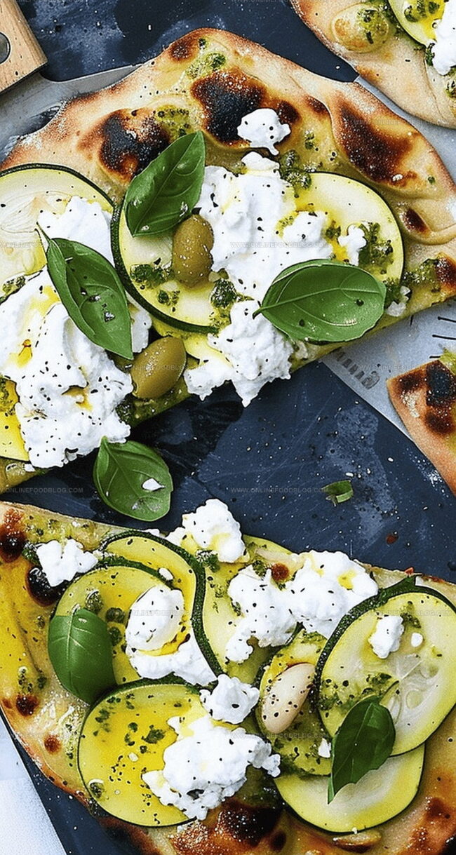 - Flatbread Assembly: Lay naan on a baking sheet, lightly brushing with olive oil, then layer with the sautéed zucchini mixture and delicately dollop the lemon-ricotta across the surface.