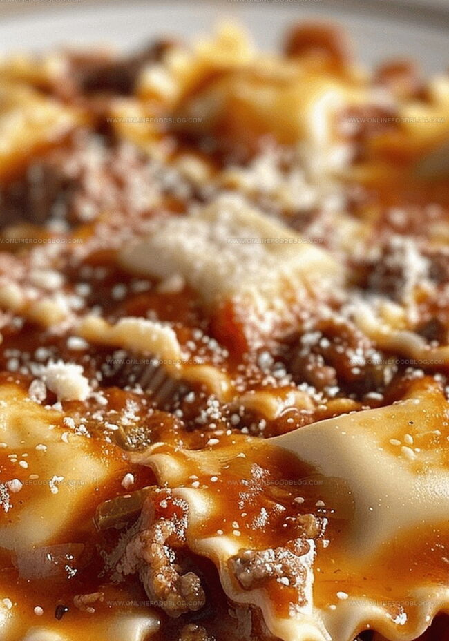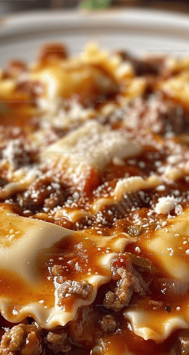 - Distribute half of the seasoned ground beef mixture uniformly over the ravioli layer, providing a rich meaty component.