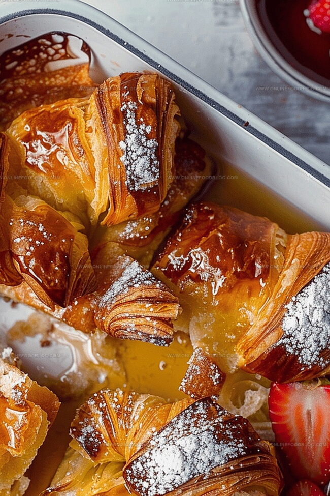 Croissant Baked French Toast brings French bakery magic straight to your breakfast table. Buttery croissants soak in a rich custard before baking to golden perfection, promising a luxurious morning treat you’ll savor with each delectable bite.