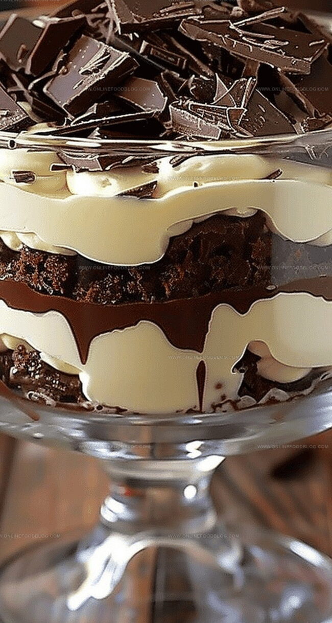 - Select a large trifle dish or individual serving glasses and construct the first layer by evenly distributing the chocolate cake pieces across the bottom, creating a solid foundation.