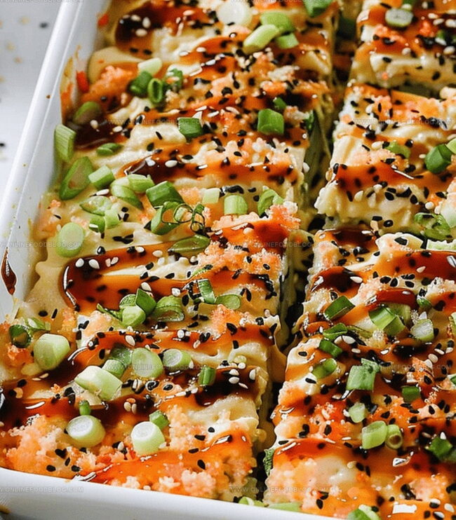 Base Ingredients:Crab Mixture Ingredients:Topping and Garnish Ingredients:Step-by-Step Instructions for Easy Sushi Bake