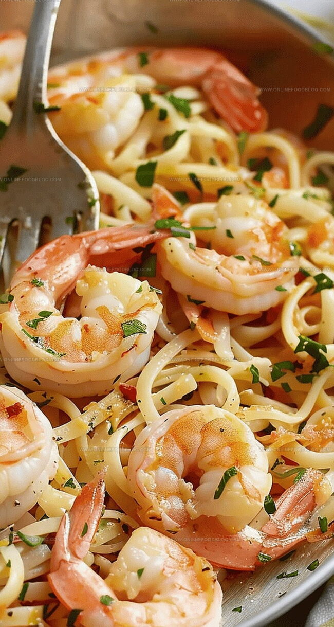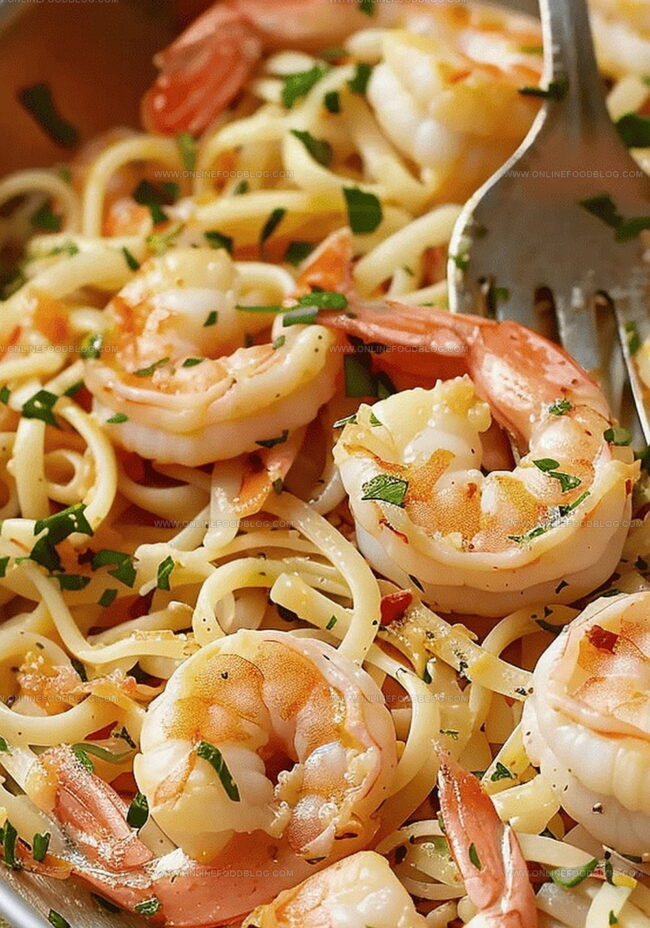 Restaurant-Style Plate Presentation: Twirl linguine in the center of a wide, white ceramic plate, creating a beautiful nest. Arrange succulent shrimp around the pasta edges, drizzle remaining sauce over the top, and sprinkle fresh parsley for a pop of color.