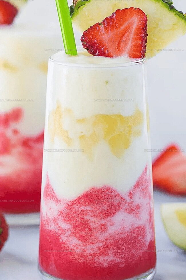Spicy-sweet Miami Vice Mocktail blends tropical strawberry and coconut flavors for a refreshing non-alcoholic cocktail. Smooth Caribbean-inspired ingredients create a delightful drink you’ll want to savor again and again.