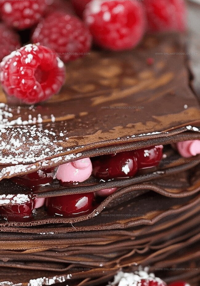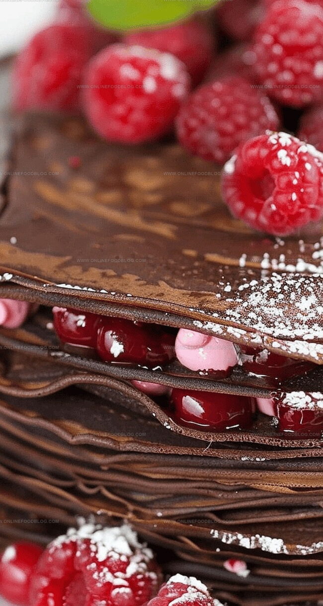 - Cake Assembly: Position first crepe on flat serving plate. Spread uniform layer of raspberry cream across entire surface. Systematically stack alternating crepes and cream layers, maintaining precision. Finish with pristine crepe on top.