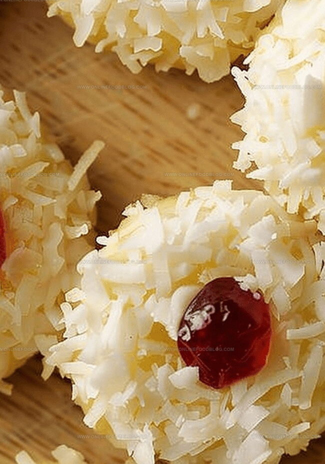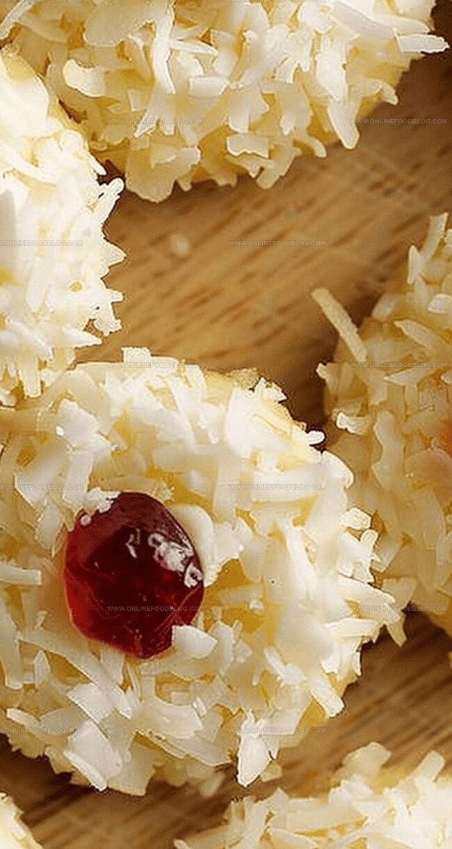 - Forming and Baking: Arrange coconut-covered dough balls on baking sheets, making a deep center indentation with a wooden spoon handle, then bake for 8-10 minutes until edges turn light golden brown.
