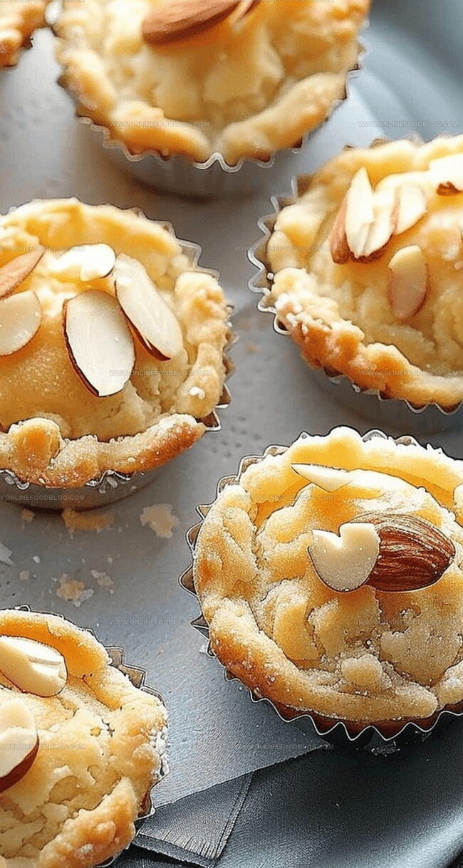 - Assembly: Distribute almond filling into prepared dough cups, filling each approximately three-quarters full, then generously garnish the surface with sliced almonds.