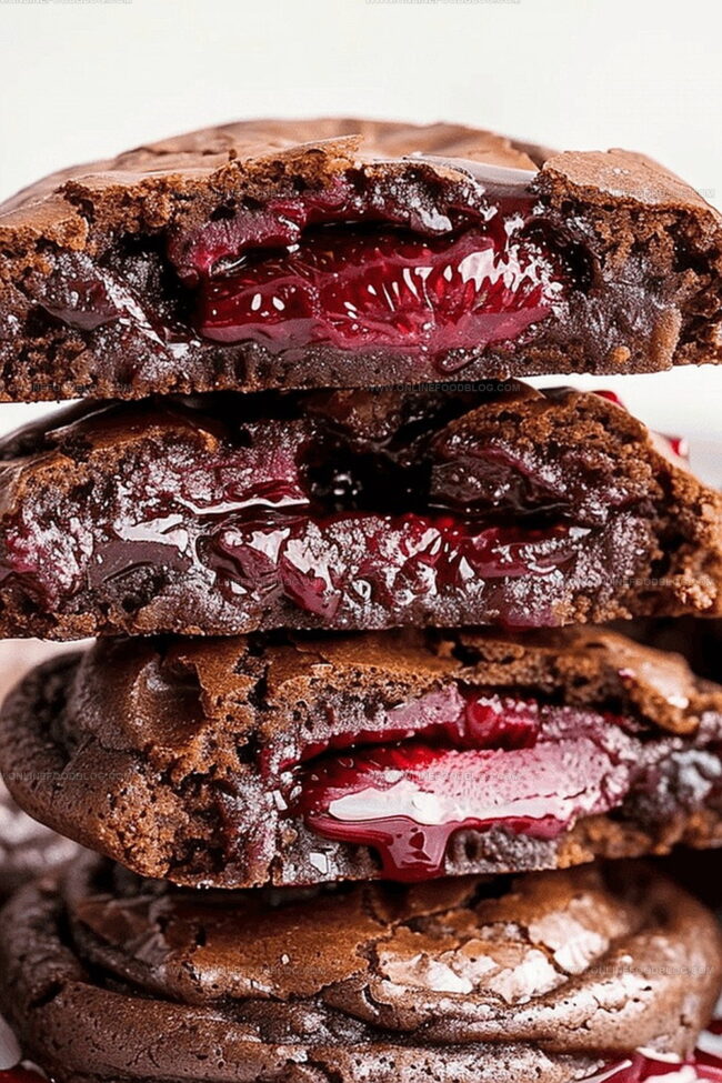 Fudgy raspberry stuffed brownie cookies blend decadent chocolate with vibrant fruit for an irresistible dessert experience.