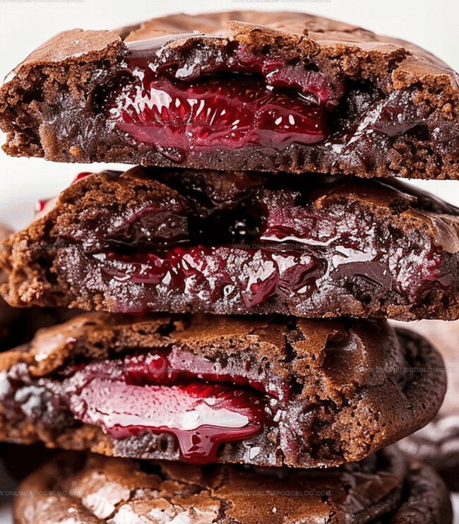 Irresistible Fudgy Raspberry Stuffed Brownie Cookies blend rich chocolate decadence with tangy raspberry centers. Chocolate lovers will savor these indulgent treats that balance intense cocoa depths with fruity surprise in each delightful bite.