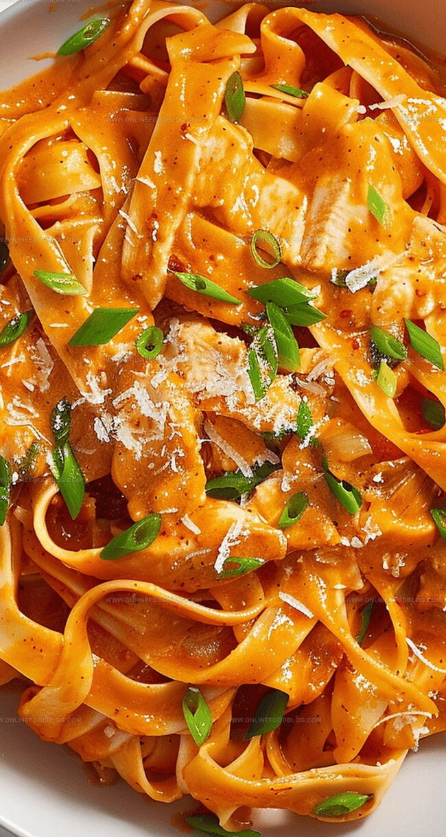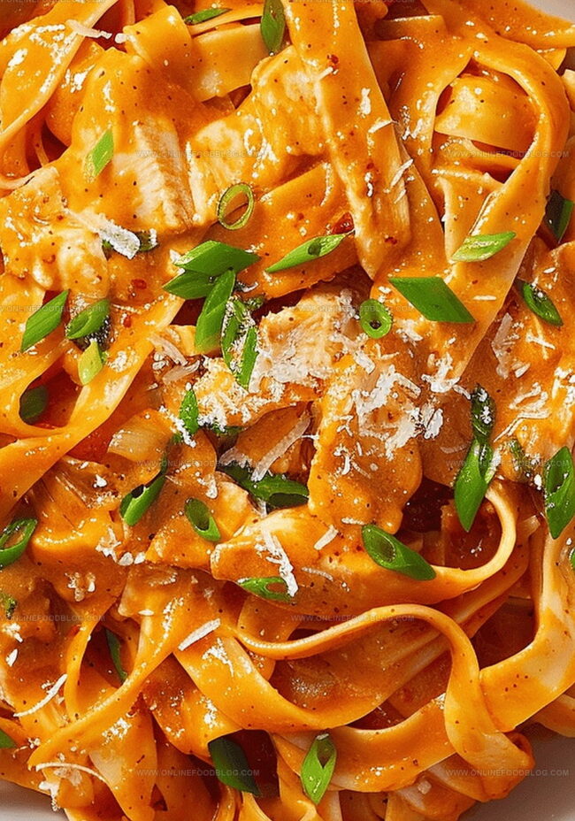 Korean-inspired gochujang chicken fettuccine brings fiery spice and creamy comfort to pasta lovers. Rich chili pepper sauce mingles with tender chicken and silky noodles, creating a bold fusion dish that satisfies cravings for global flavors.