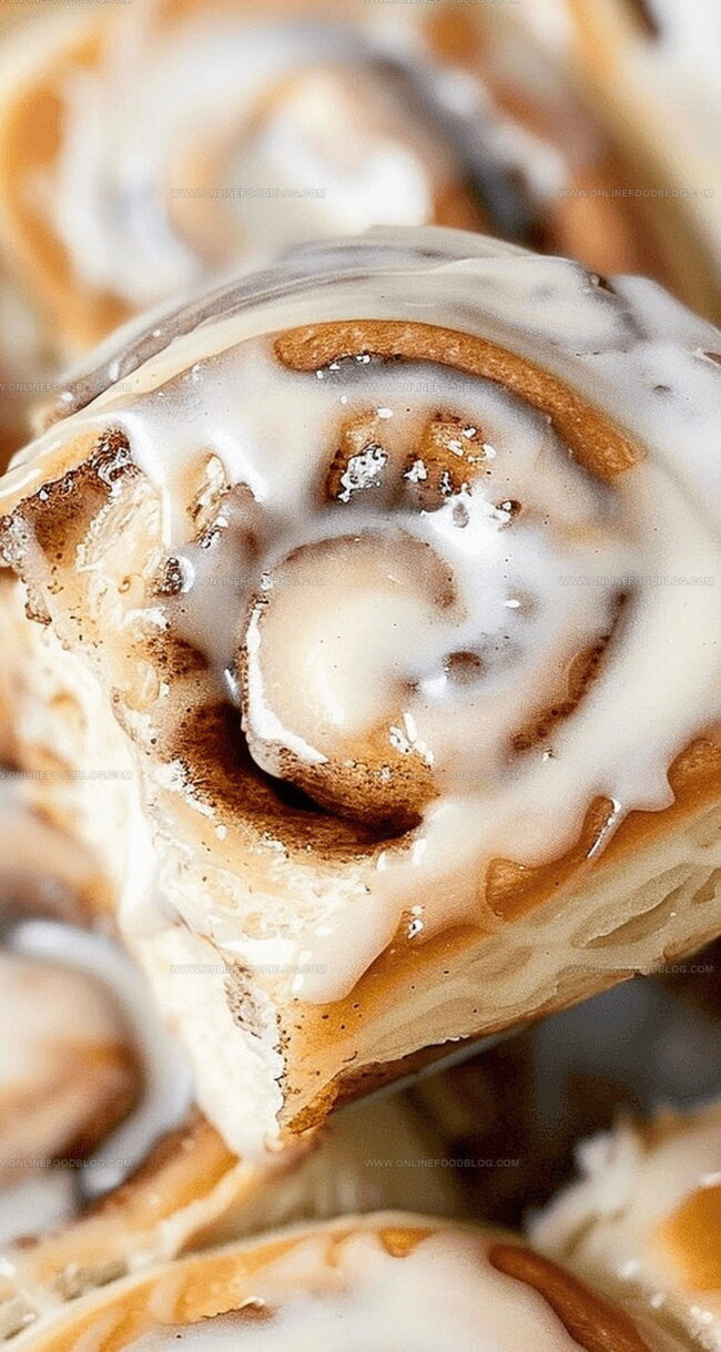 Lavish the warm cinnamon rolls with the silky frosting, allowing it to cascade down the curves. Let the rolls rest briefly, letting the topping settle and flavors mingle.