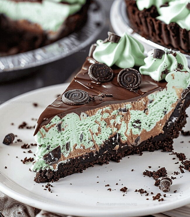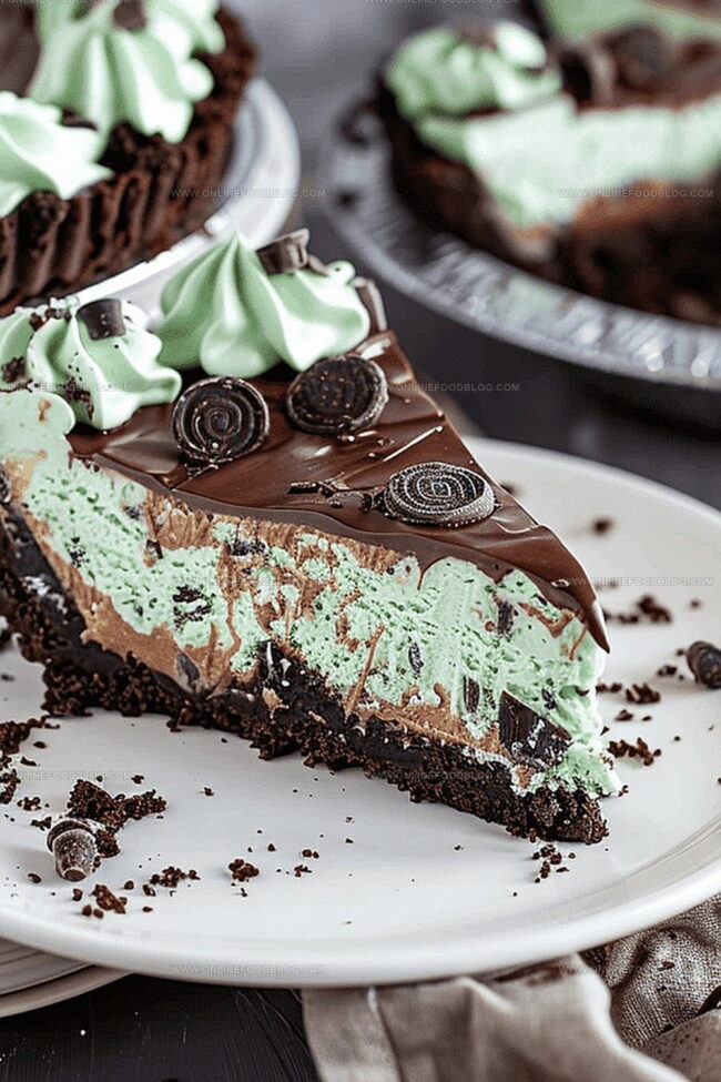Mint chocolate lovers rejoice with this nostalgic Grasshopper Pie – a creamy, no-bake dessert featuring a chocolate cookie crust, silky mint filling, and whipped cream topping that promises pure indulgence from the first refreshing bite to the last delightful crumb.