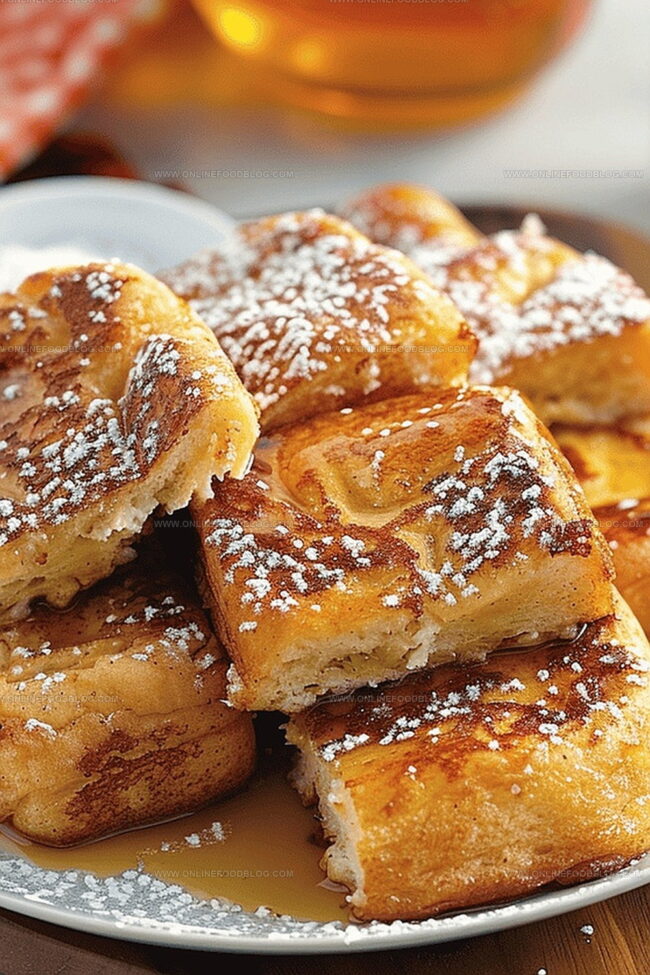 - Transfer the French toast rolls to serving plates and dust generously with powdered sugar, accompanying with warm maple syrup for an indulgent breakfast experience.